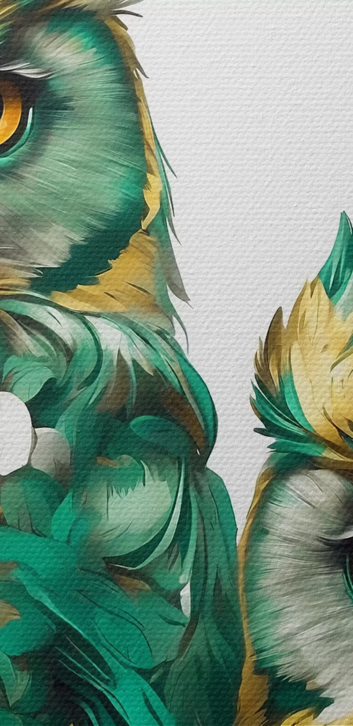 Okrągłe obrazy Dwie zielone sowy w liściach r37569