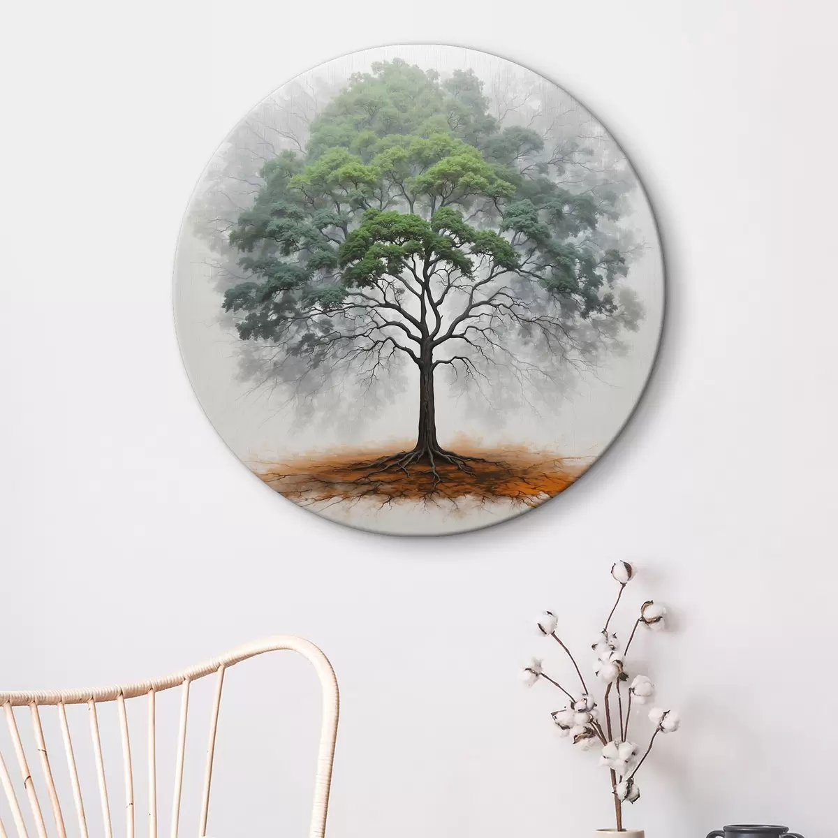 Okrągły obraz Majestatyczne drzewo we mgle Nr r37577