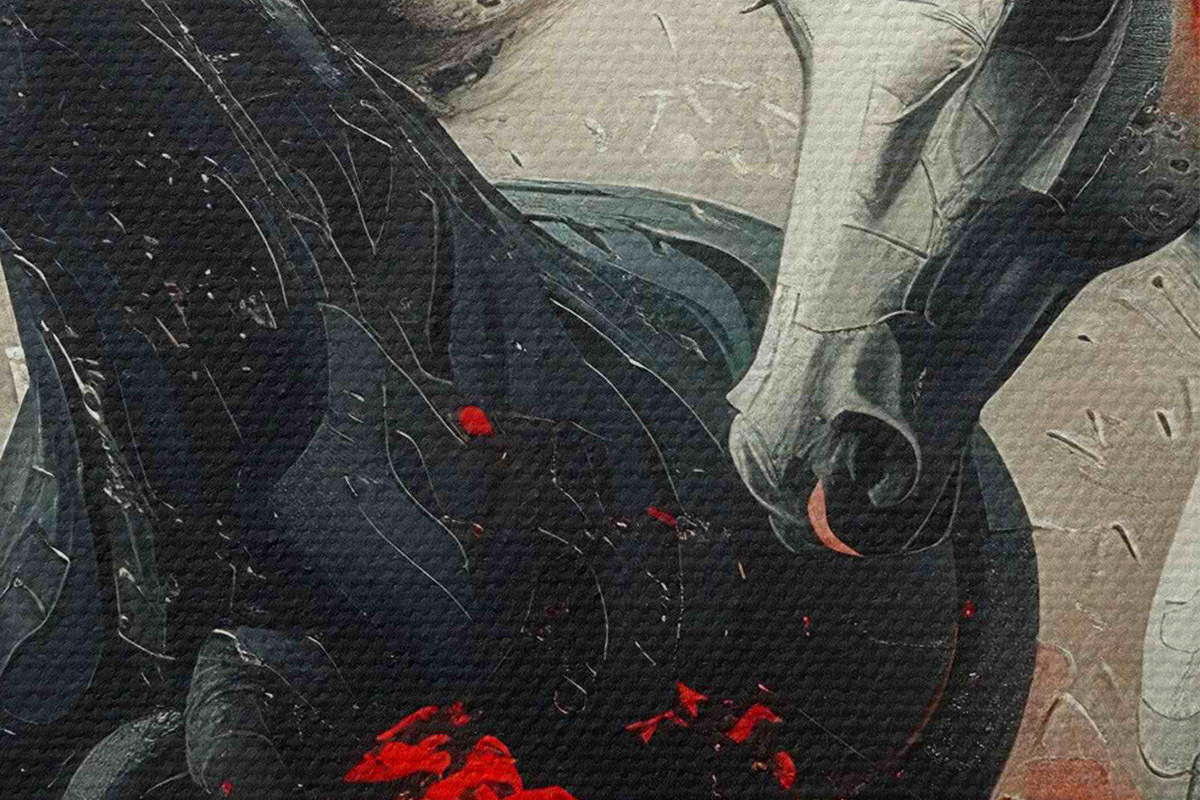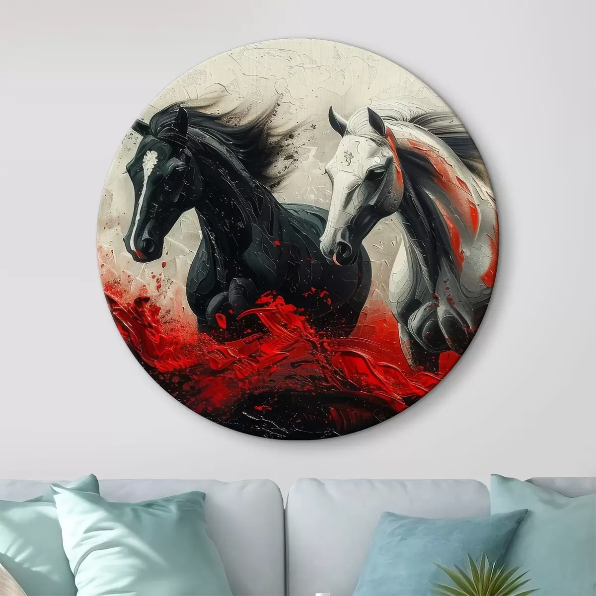 Okrągły obraz Obraz biegnących koni z czerwoną farbą Nr r37769