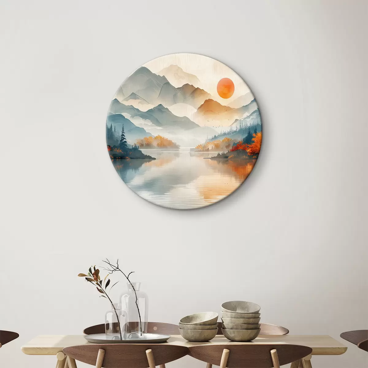 Okrągłe obrazy Krajobraz z górami i wodą r37780