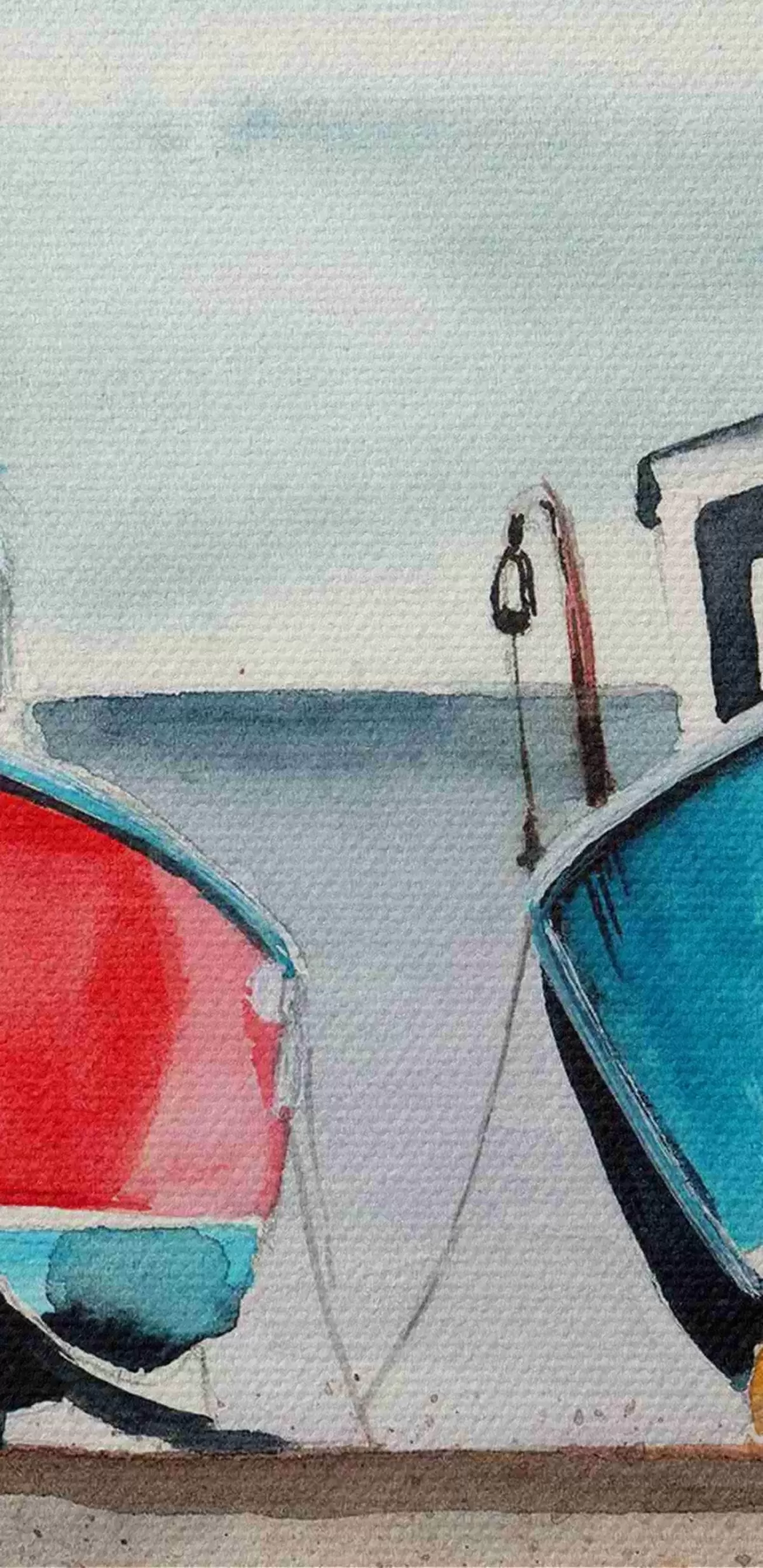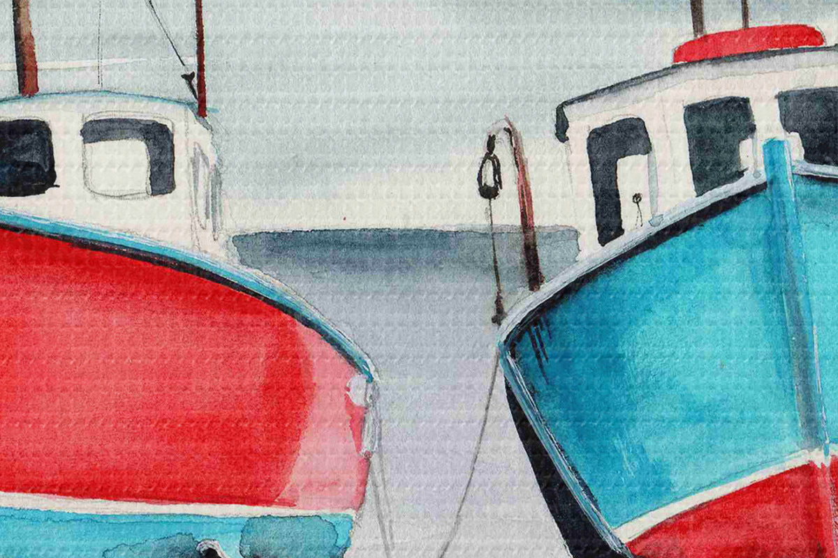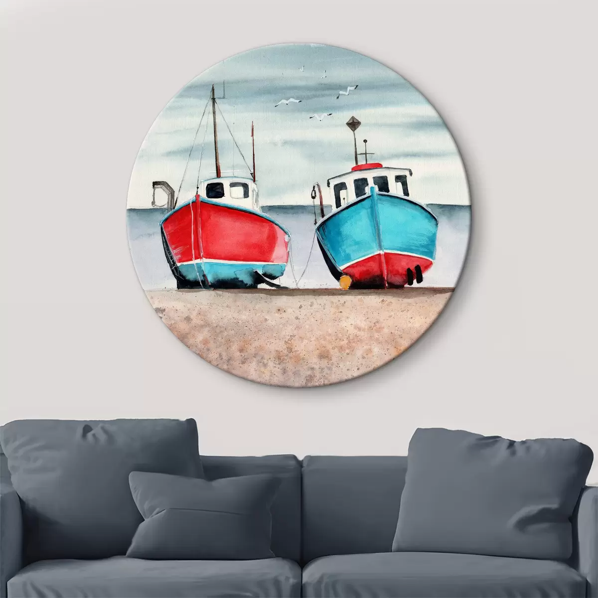 Okrągły obraz Trzy łodzie spoczywające na brzegu Nr r37787