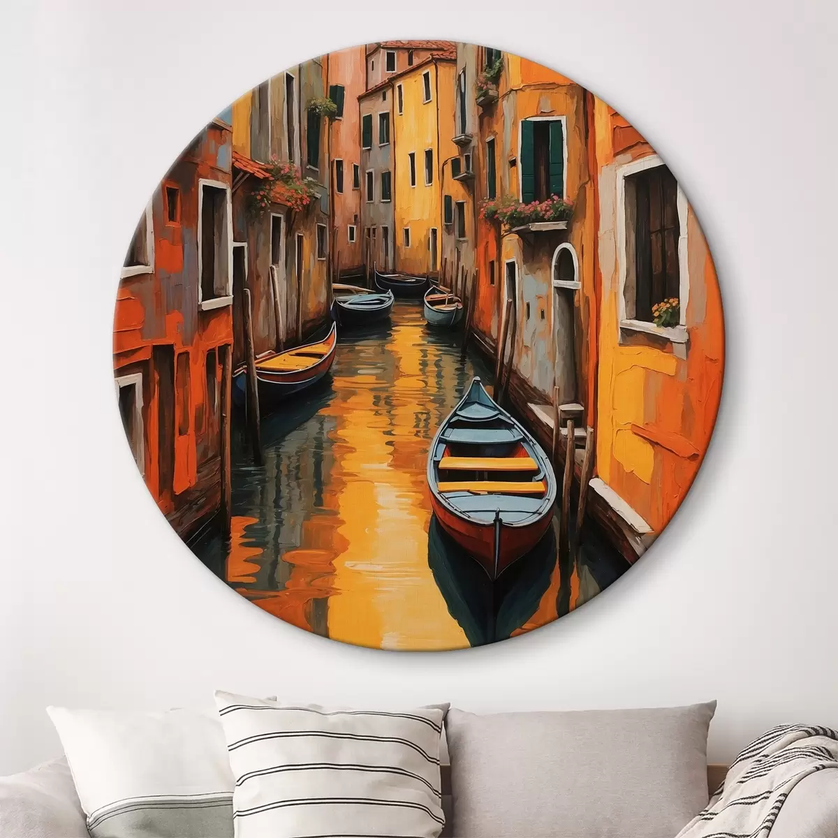 Okrągły obraz Łódź w kanale między budynkami Nr r37790