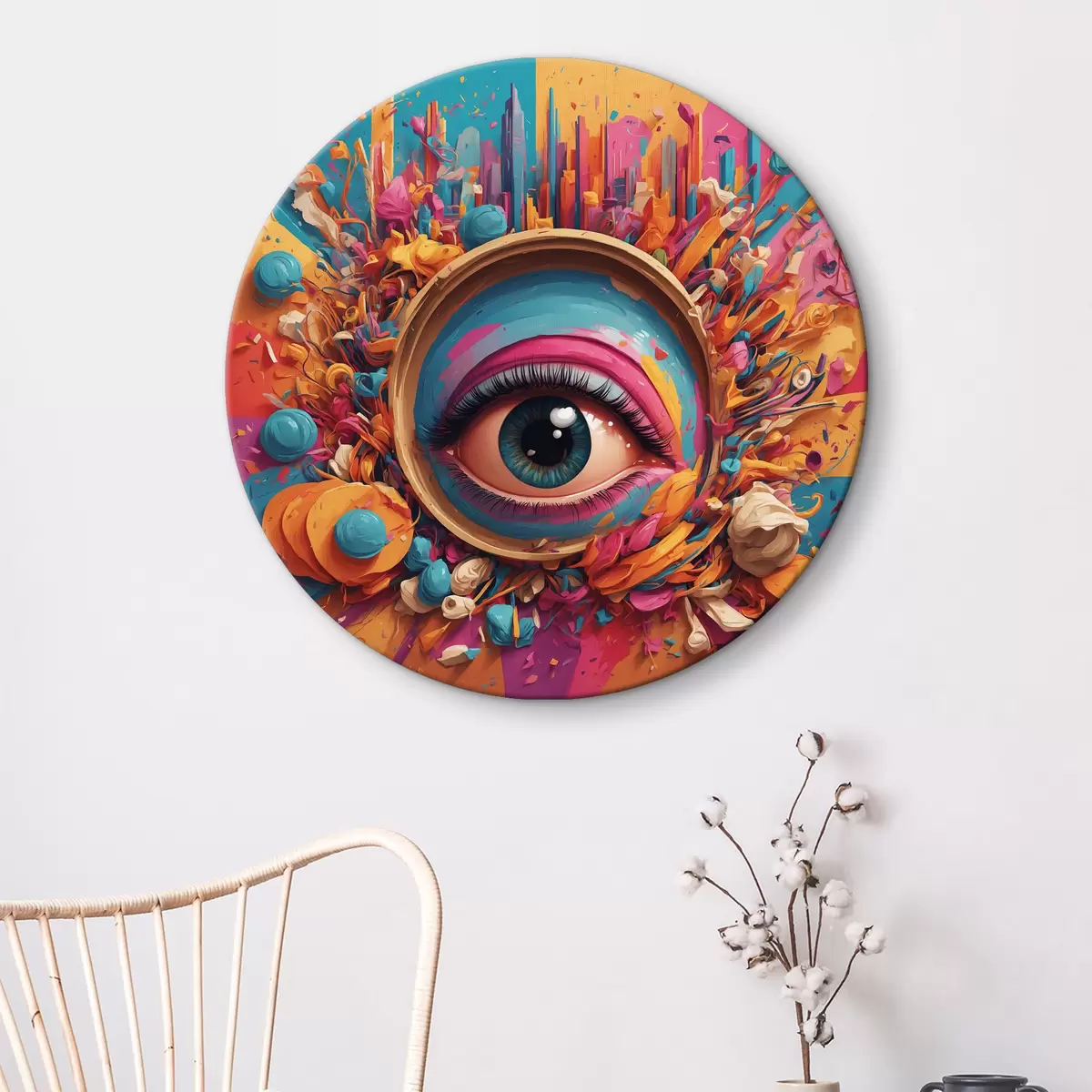 Okrągły obraz Kolorowe oko otoczone okręgiem Nr r37791