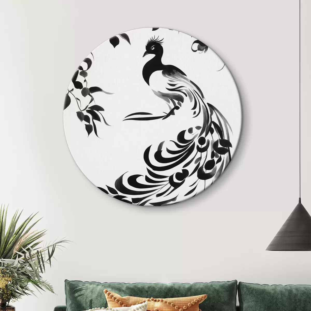 Okrągły obraz Czarno-biały obraz przedstawiający ptaka Nr r37794