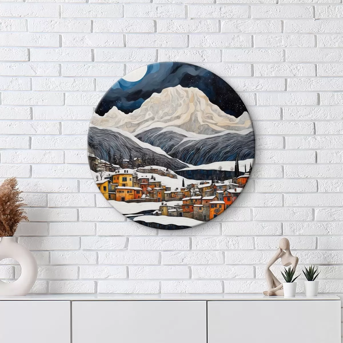 Okrągły obraz Obraz miasta pod śniegiem Nr r37795