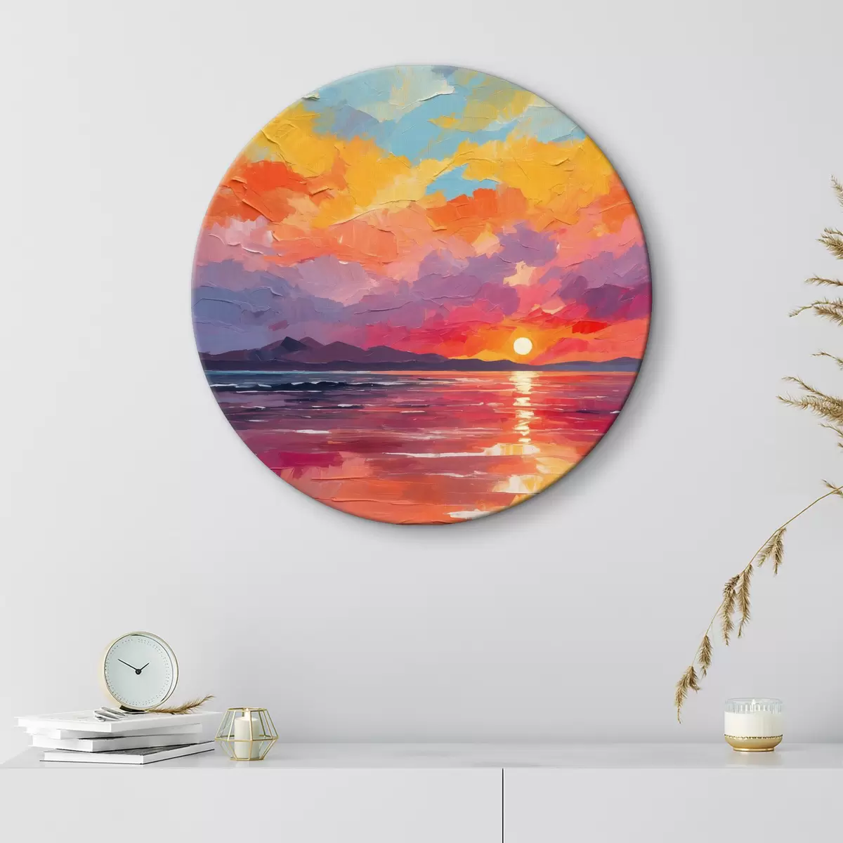 Okrągły obraz Zachód słońca nad morzem z akrylami Nr r37807