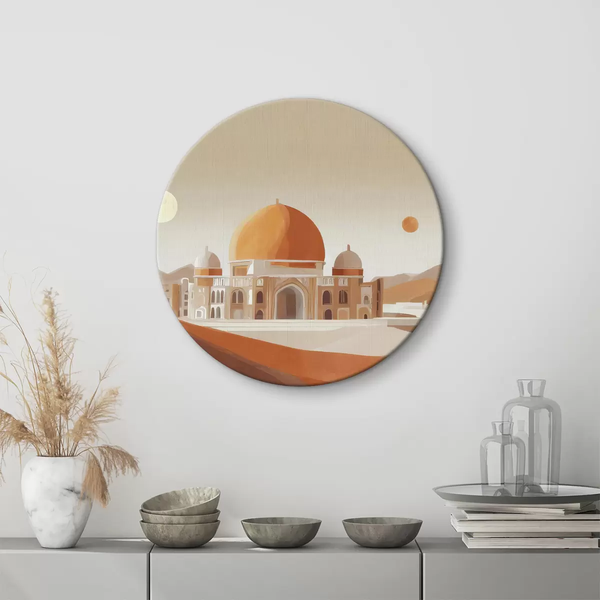 Okrągły obraz Budynek z kopułą i pustynny krajobraz Nr r37815
