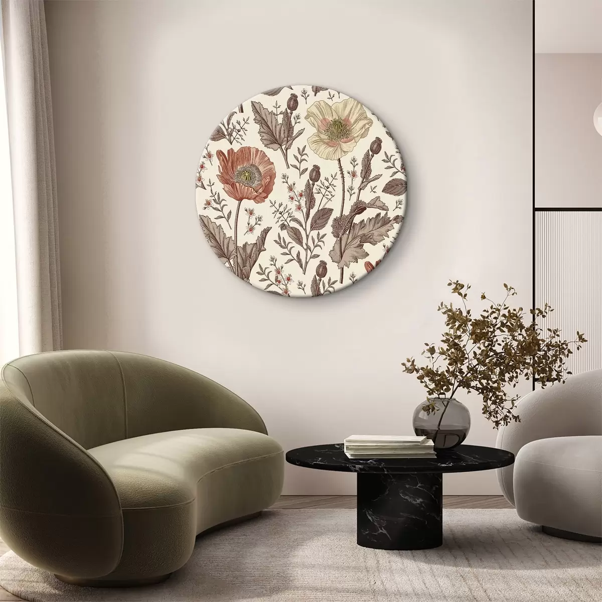 Okrągły obraz Wzór kwiatów i liści Nr r37846