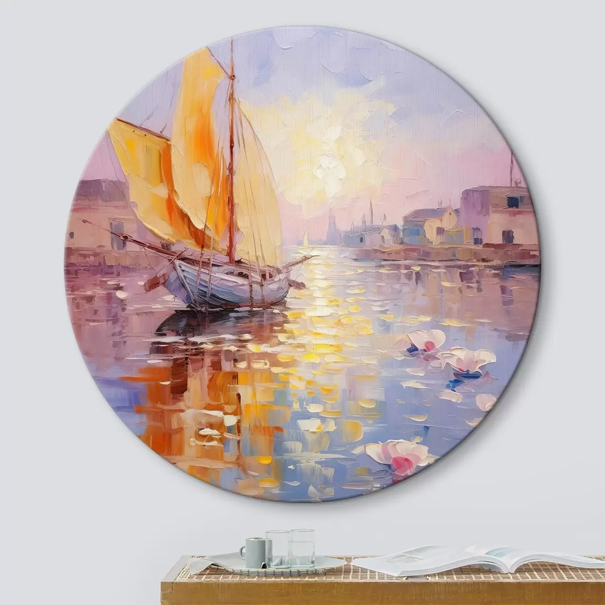 Okrągły obraz Płynąc ku kolorowemu zachodowi słońca Nr r37882