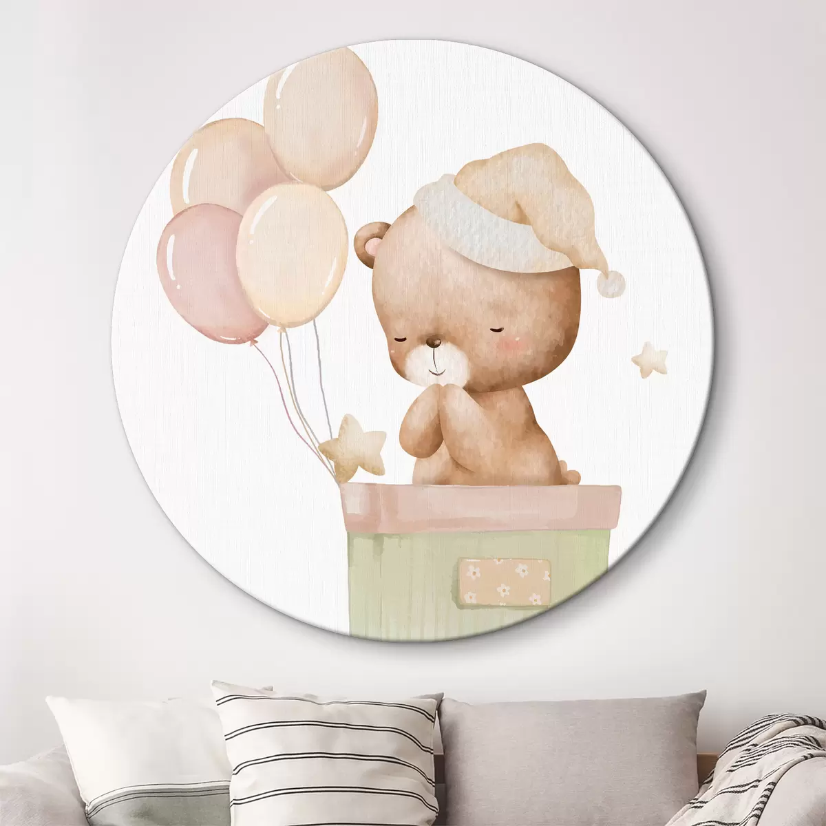 Okrągły obraz Śpiący niedźwiadek z balonami Nr r37918