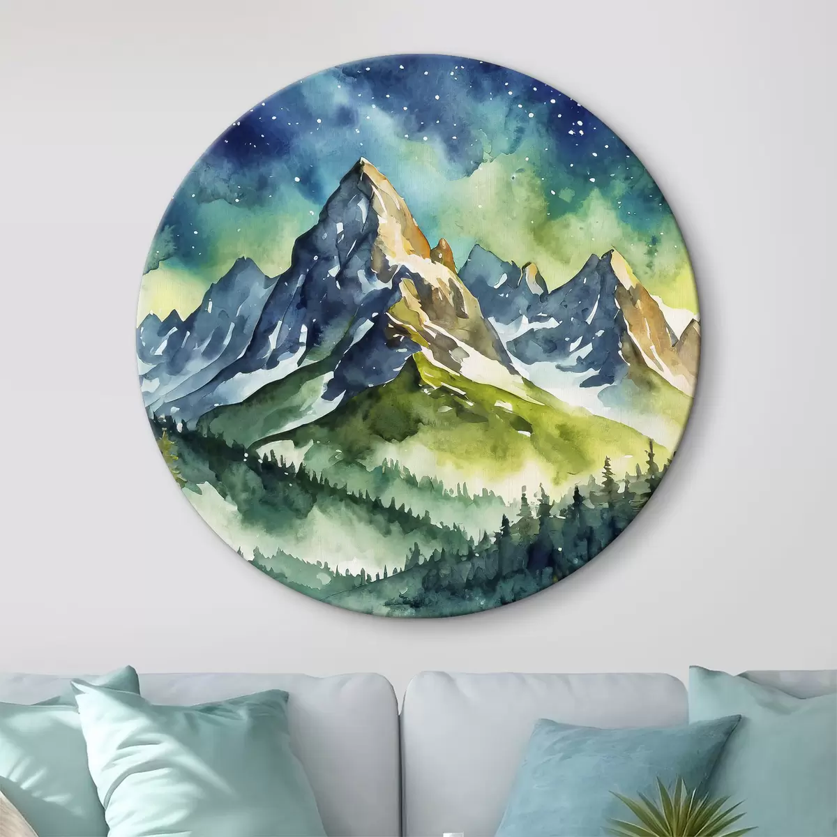 Okrągły obraz Majestatyczne góry pod rozgwieżdżonym niebem Nr r37944