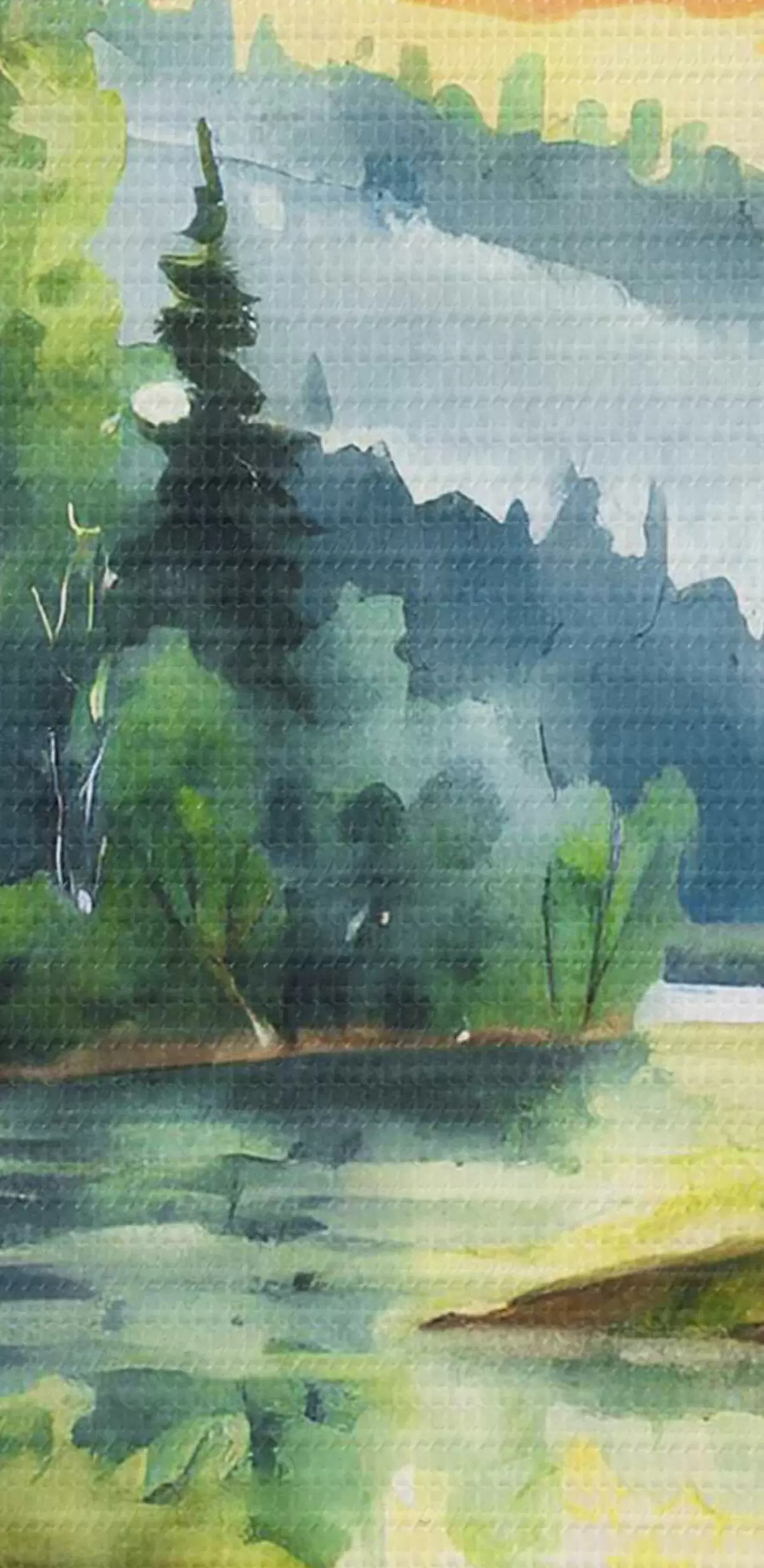 Drobny splot nici na tym płótnie przypomina powierzchnię profesjonalnych płócien artystycznych.