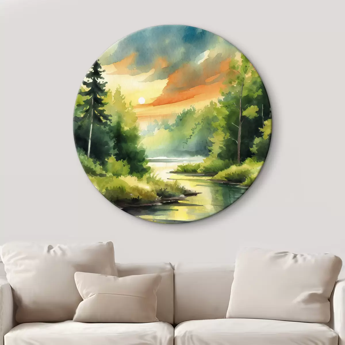 Okrągłe obrazy Spokojny las w pobliżu spokojnej rzeki r37953
