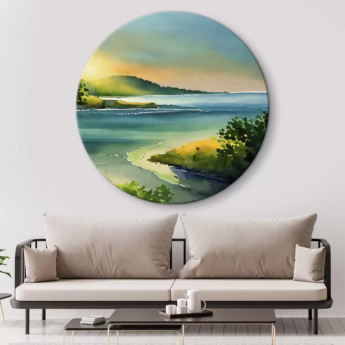 Okrągły obraz Spokojne wody i łagodne wzgórza Nr r37955