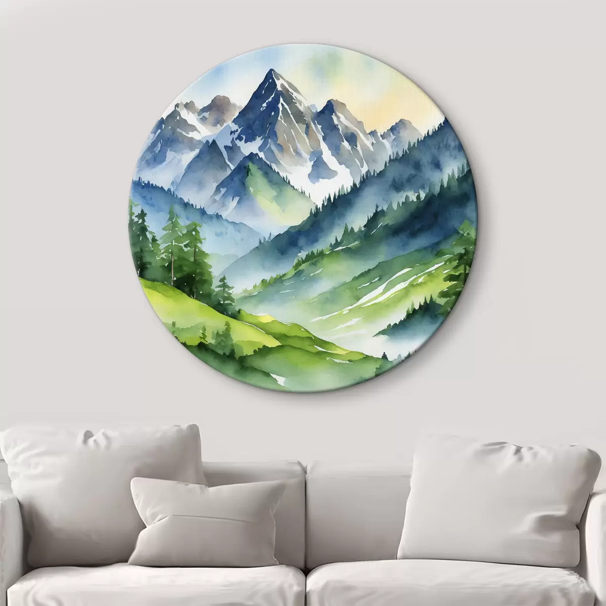 Okrągłe obrazy Majestatyczne góry pod miękkim niebem r37957