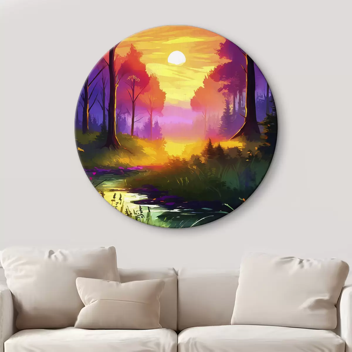 Okrągły obraz Odbicie zachodu słońca w rzece Nr r37997