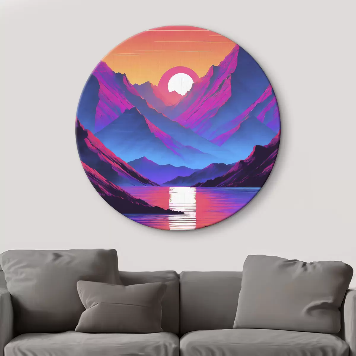 Okrągły obraz Majestatyczne góry o zachodzie słońca Nr r37999