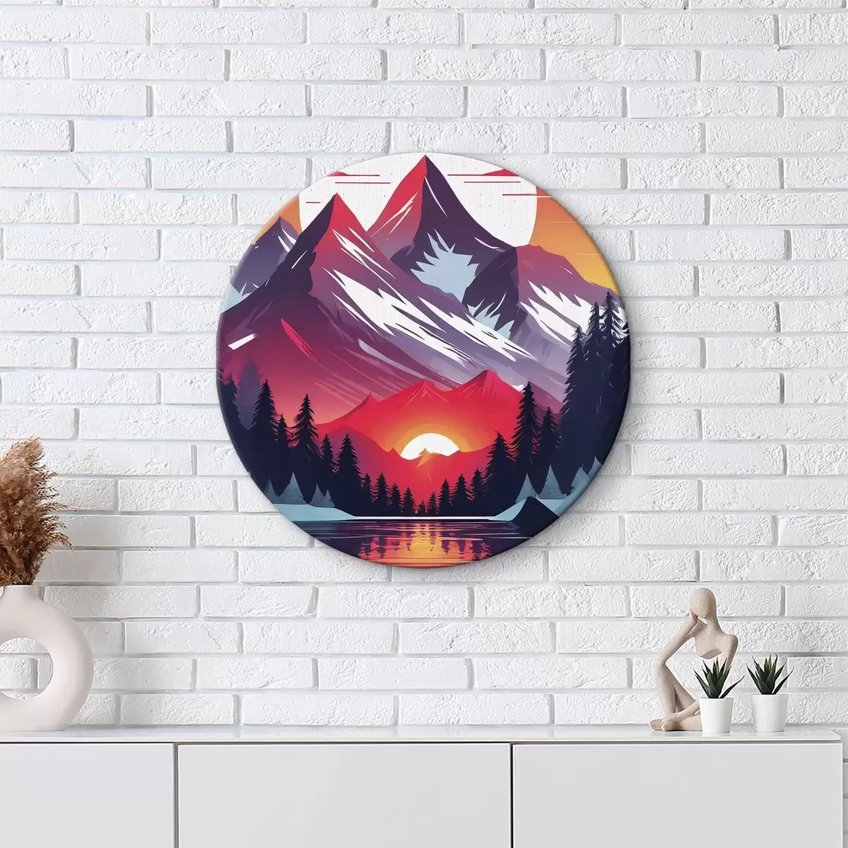 Okrągły obraz Majestatyczne góry pod jasnym niebem Nr r38005