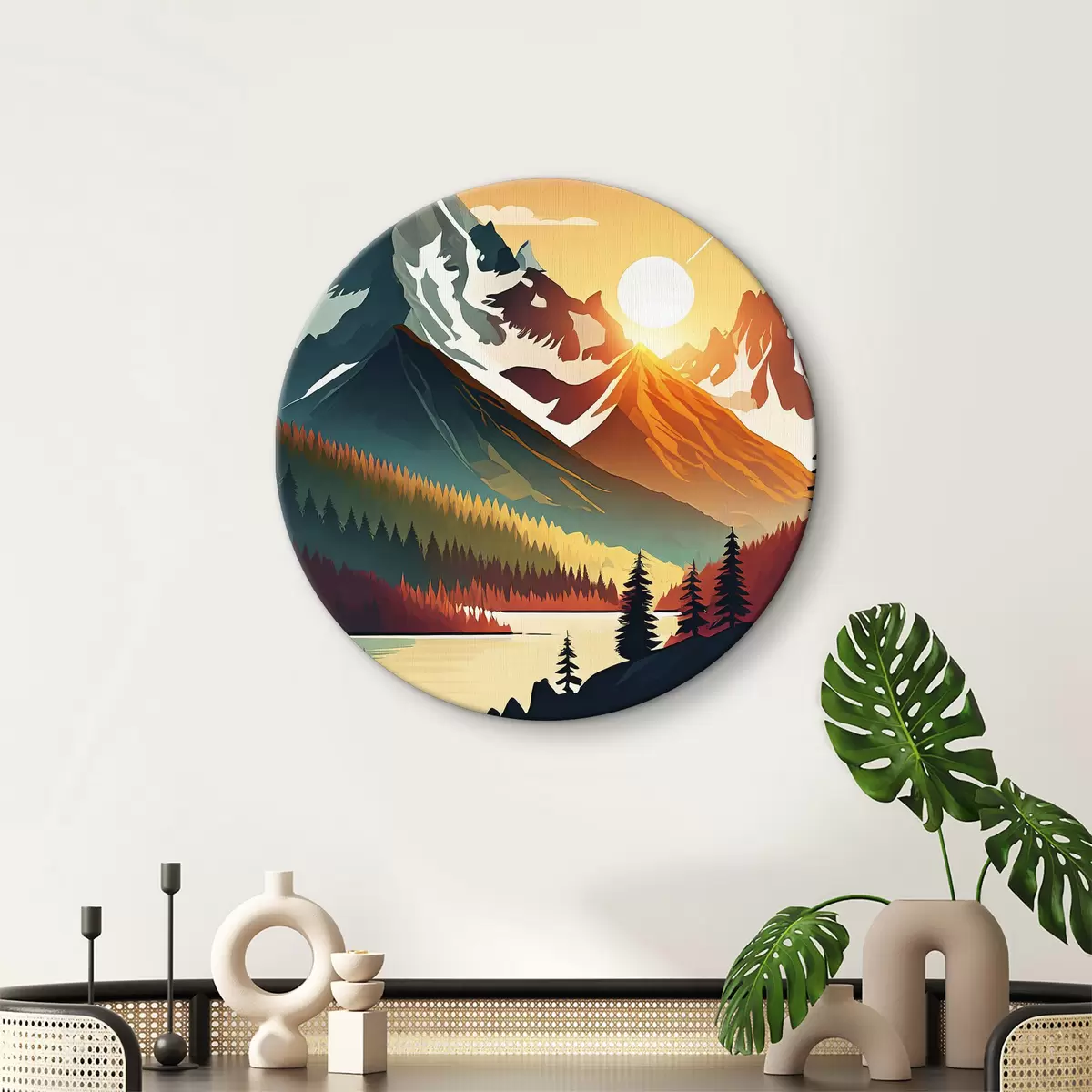 Okrągły obraz Majestatyczne góry pod jasnym niebem Nr r38006