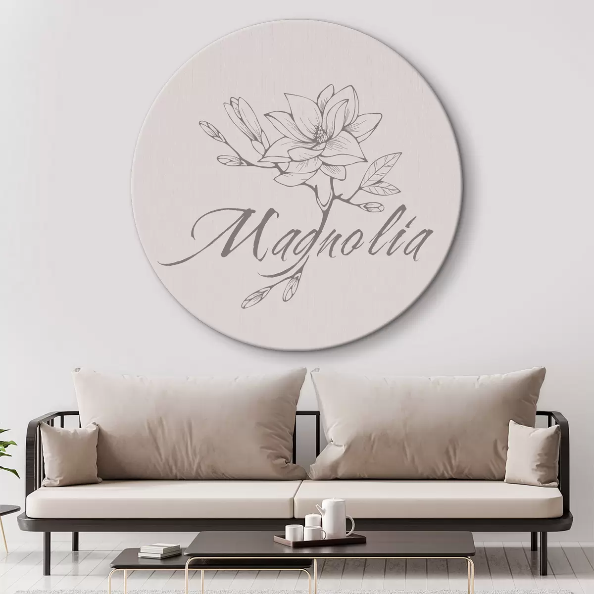 Okrągłe obrazy Magnolia, kwiat, botaniczny, eleganckie liście, pastelowe kolory, minimalizm r38007