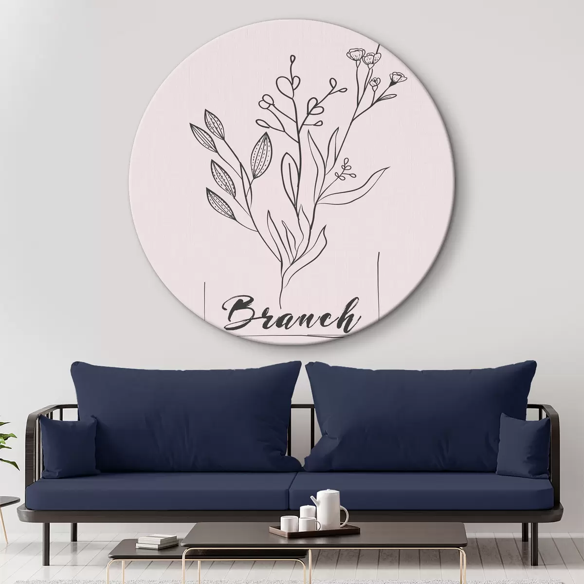 Okrągły obraz Minimalizm, różowy kolor, eleganckie polne kwiaty, gałązka kwiatowa, botaniczny Nr r38008