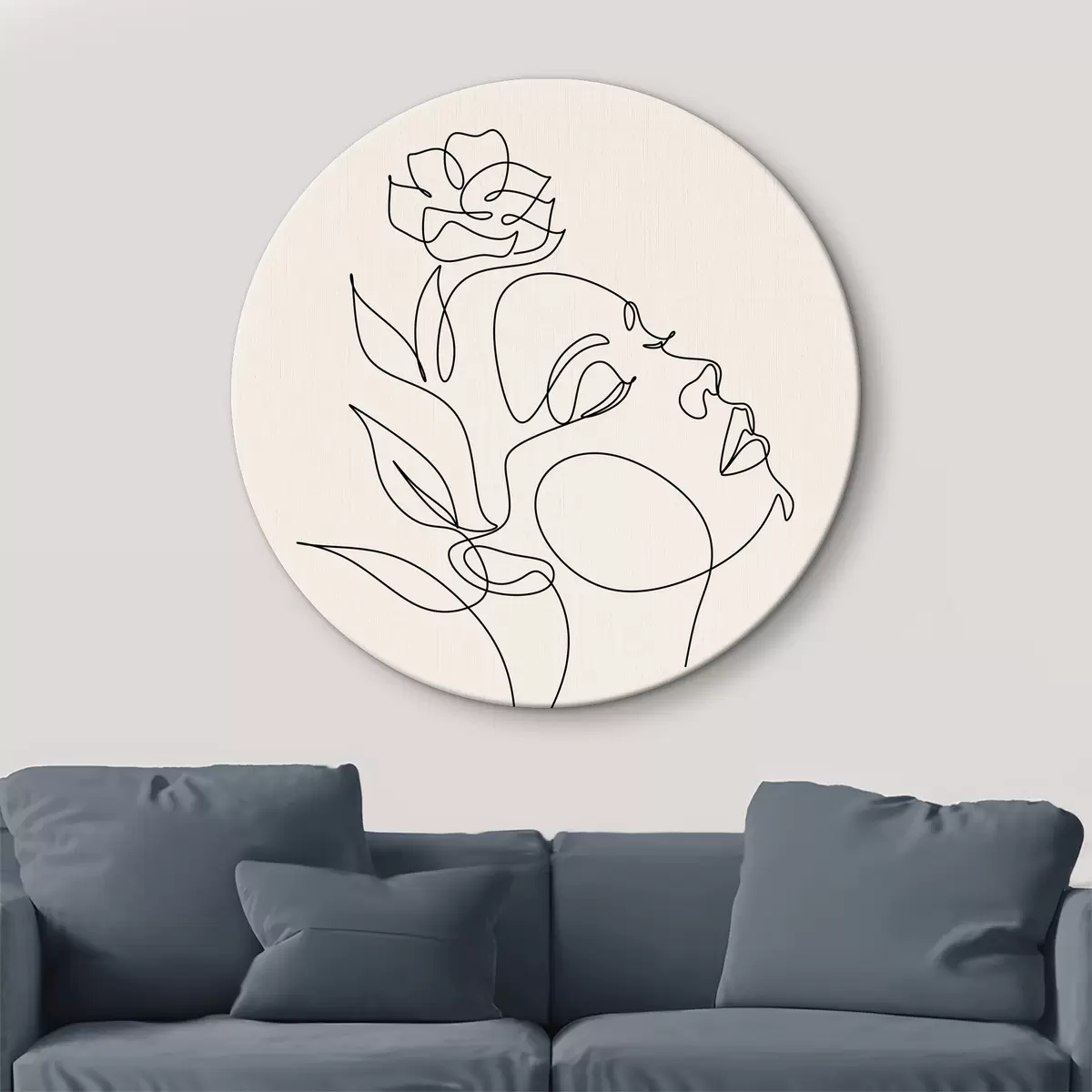 Okrągły obraz Kobieta twarz, abstrakcja, linia, naturalny Nr r38011