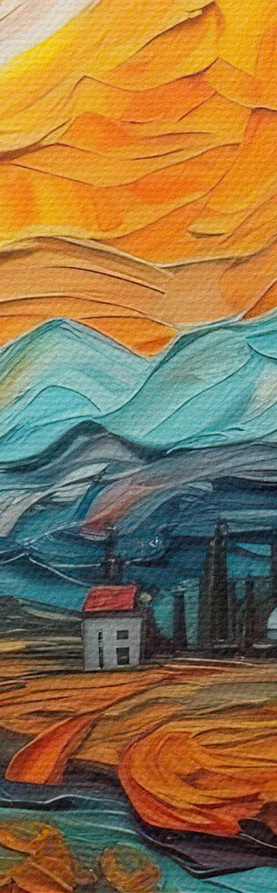 Obraz można powiesić natychmiast po jego otrzymaniu. Obraz zostanie naciągnięty na drewniany blejtram o szerokości 2 cm.