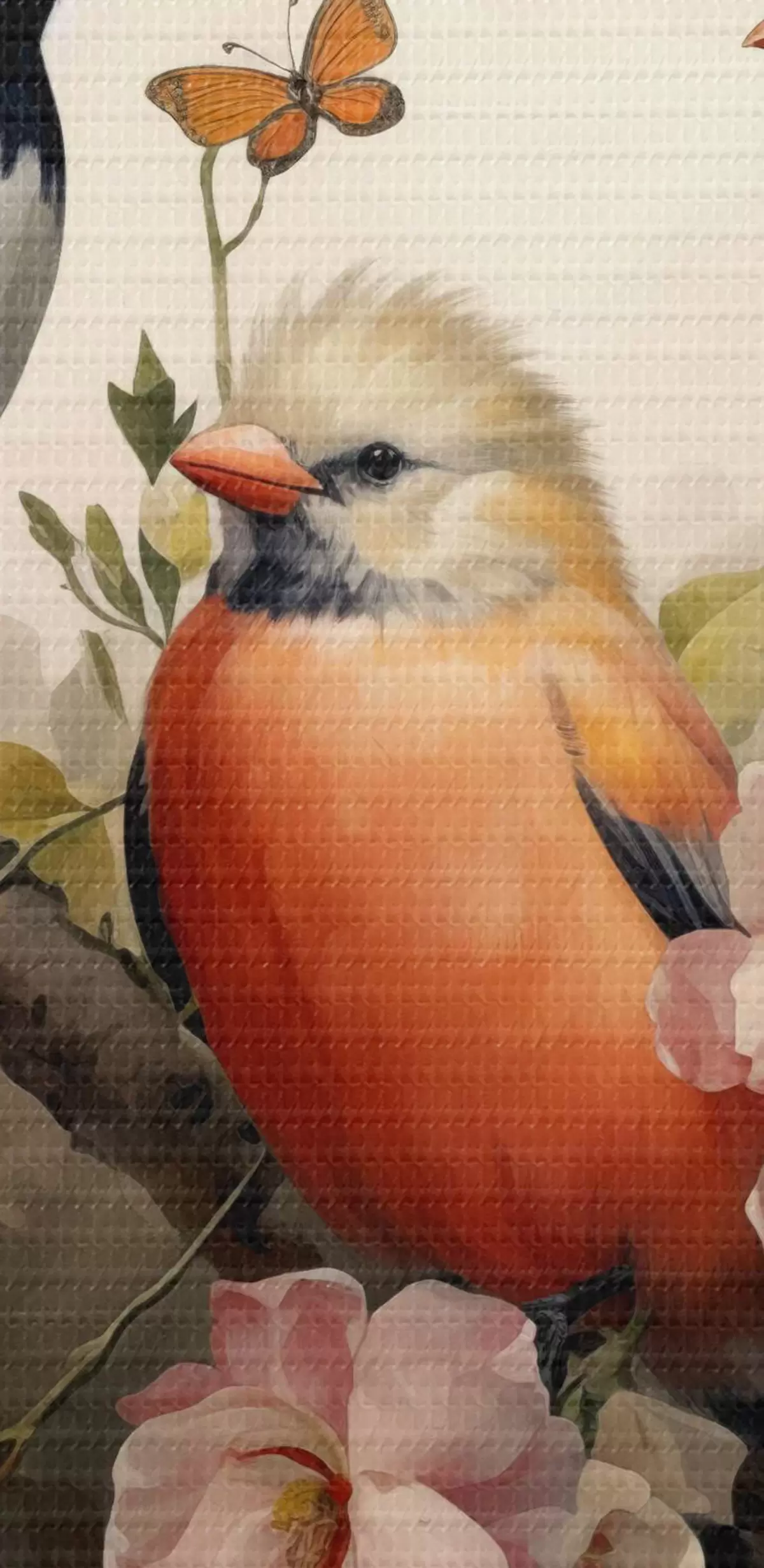 Okrągły obraz Grupa ptaków na gałęzi z kwiatami Nr r38103