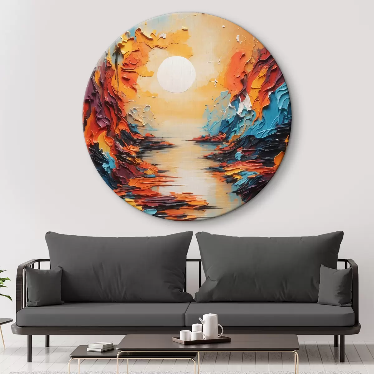 Okrągły obraz Rzeka o zachodzie słońca w oleju Nr r38111