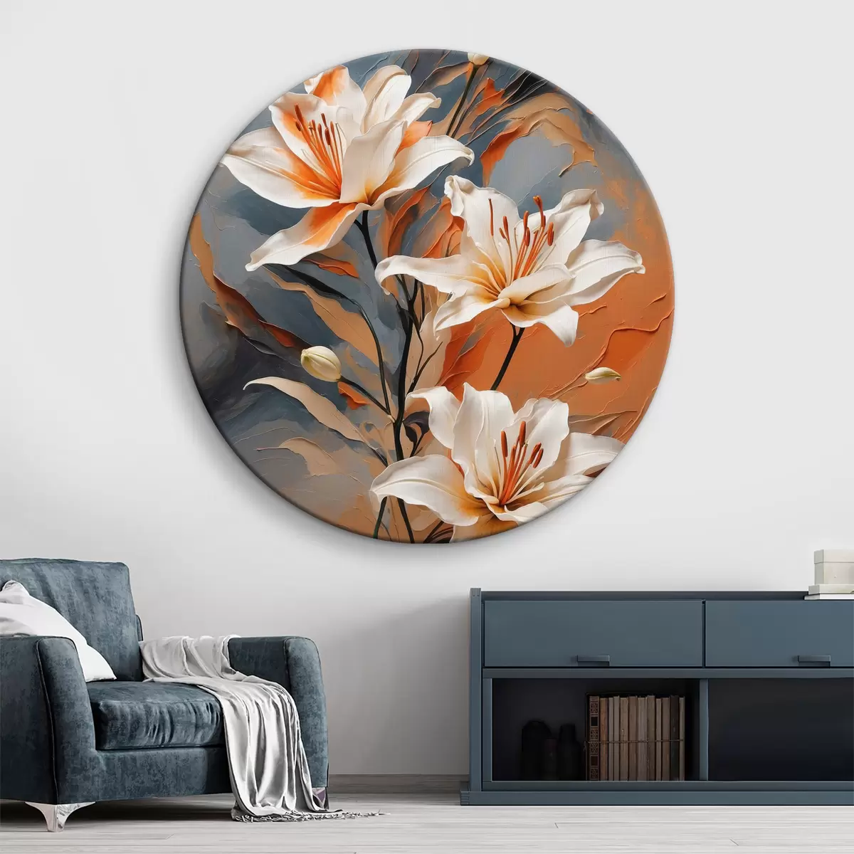 Okrągły obraz Obraz białych kwiatów Nr r38113