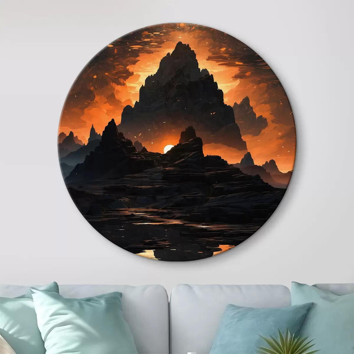 Okrągły obraz Pasmo górskie z zachodzącym za nim słońcem Nr r38120