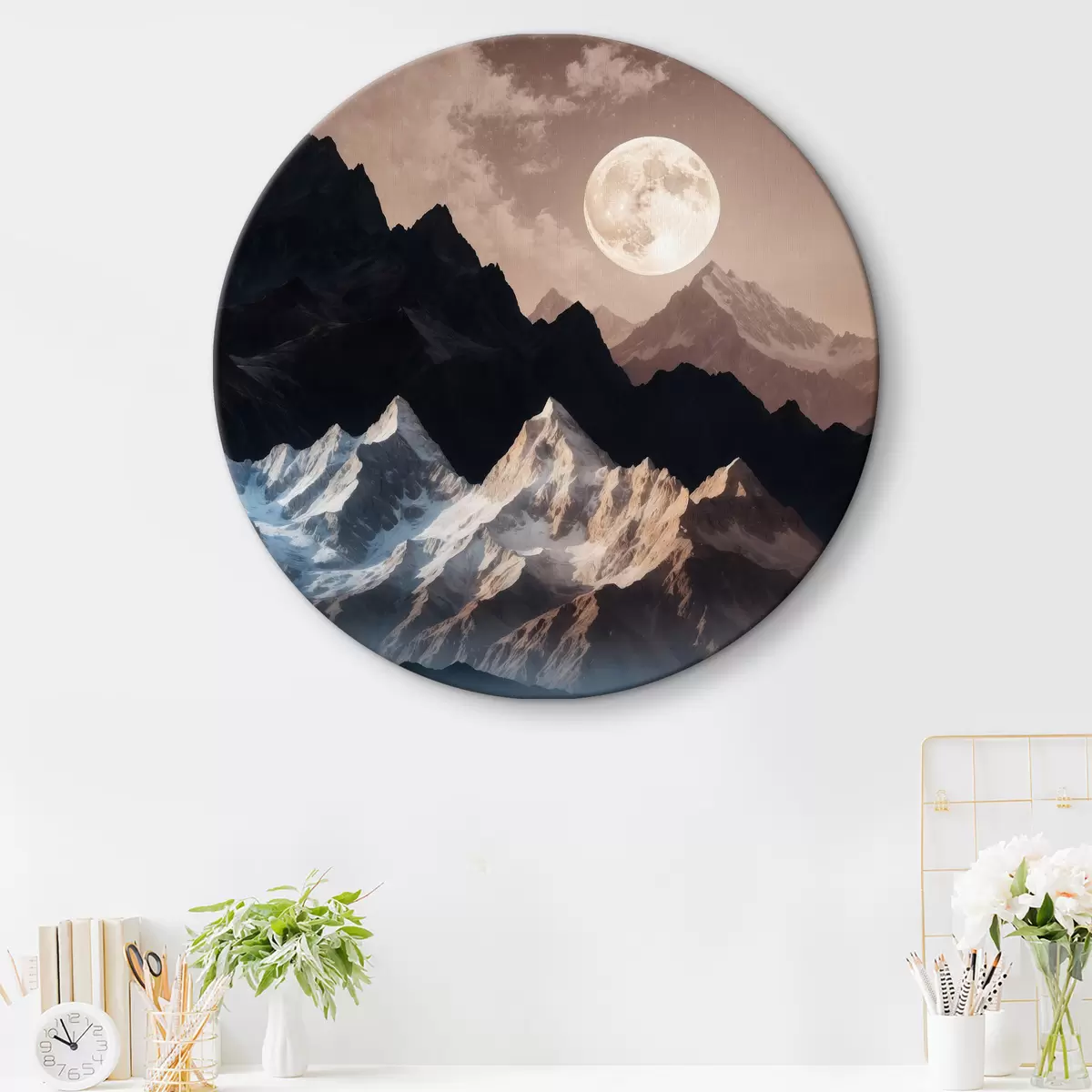 Okrągły obraz Księżyc nad górami i chmurami Nr r38122