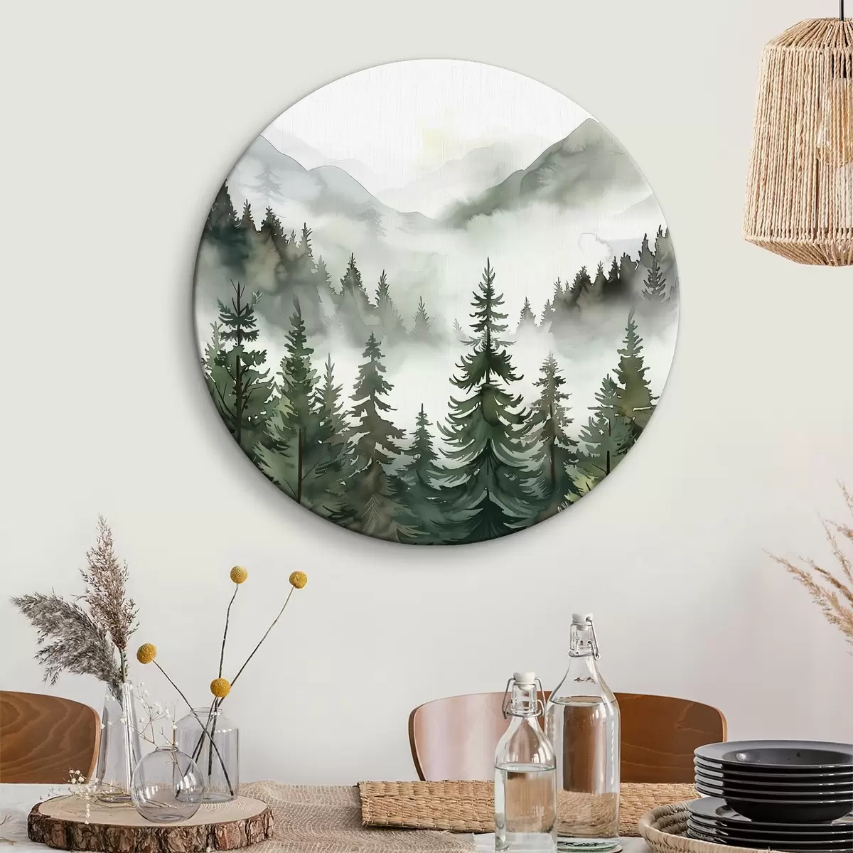 Okrągły obraz Krajobraz z drzewami i górami Nr r38139