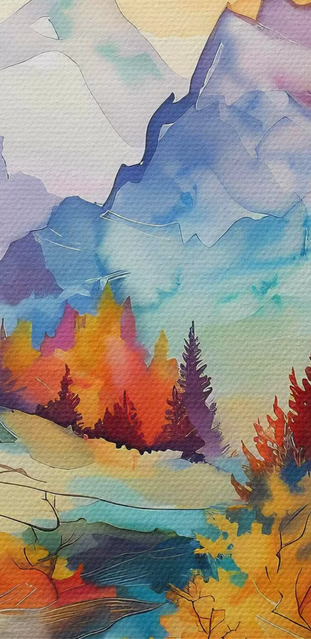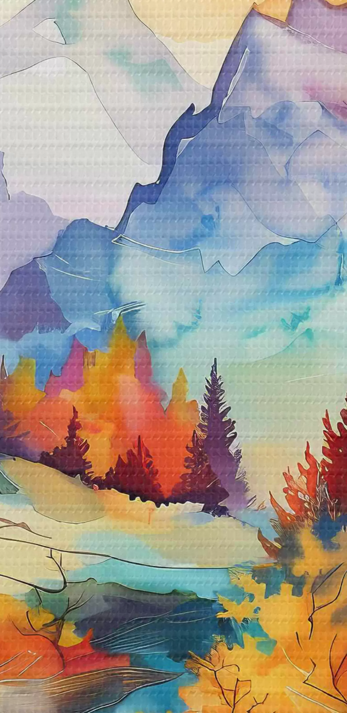 Okrągły obraz Kolorowy górski krajobraz z drzewami i rzeką Nr r38145