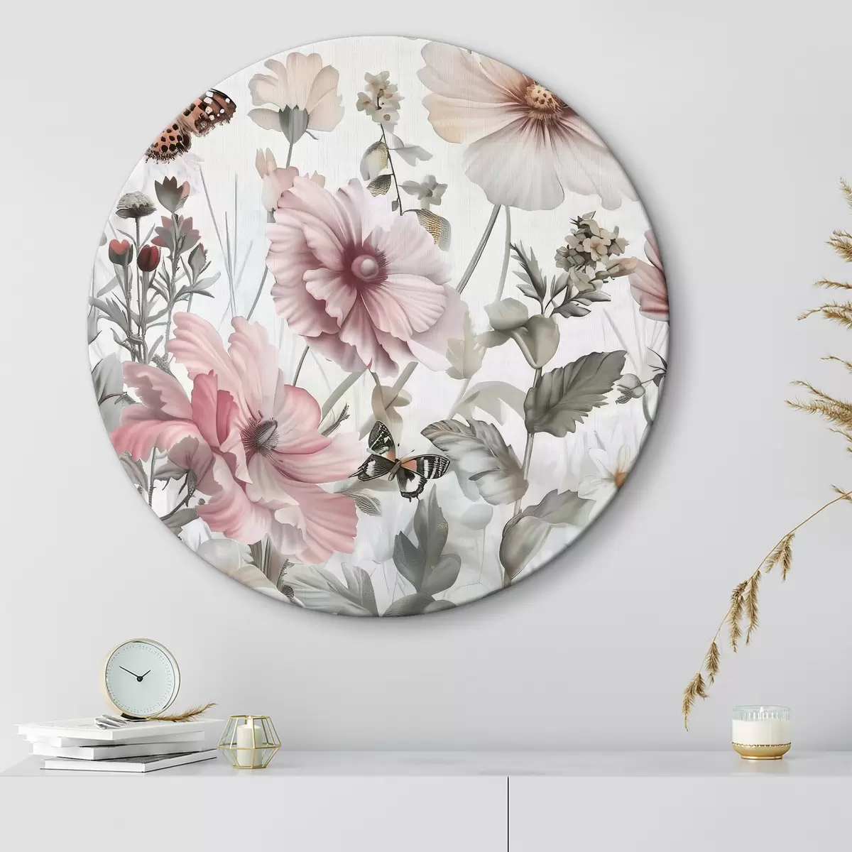 Okrągłe obrazy Zbliżenie na kwiaty i motyle r38153