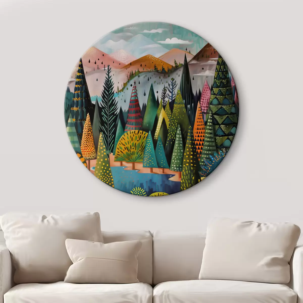 Okrągły obraz Obraz przedstawiający drzewa i rzekę Nr r38157