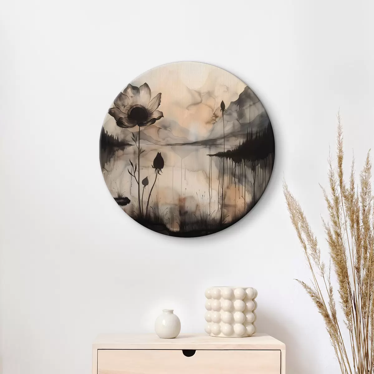 Okrągłe obrazy Obraz przedstawiający kwiat i jezioro r38161