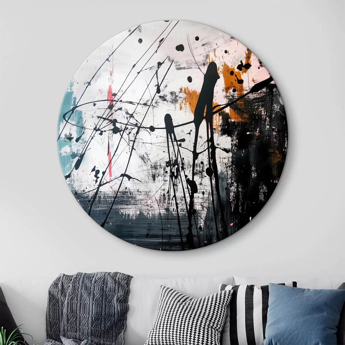 Okrągłe obrazy Abstrakcyjne plamy farby w stylu grunge r38165