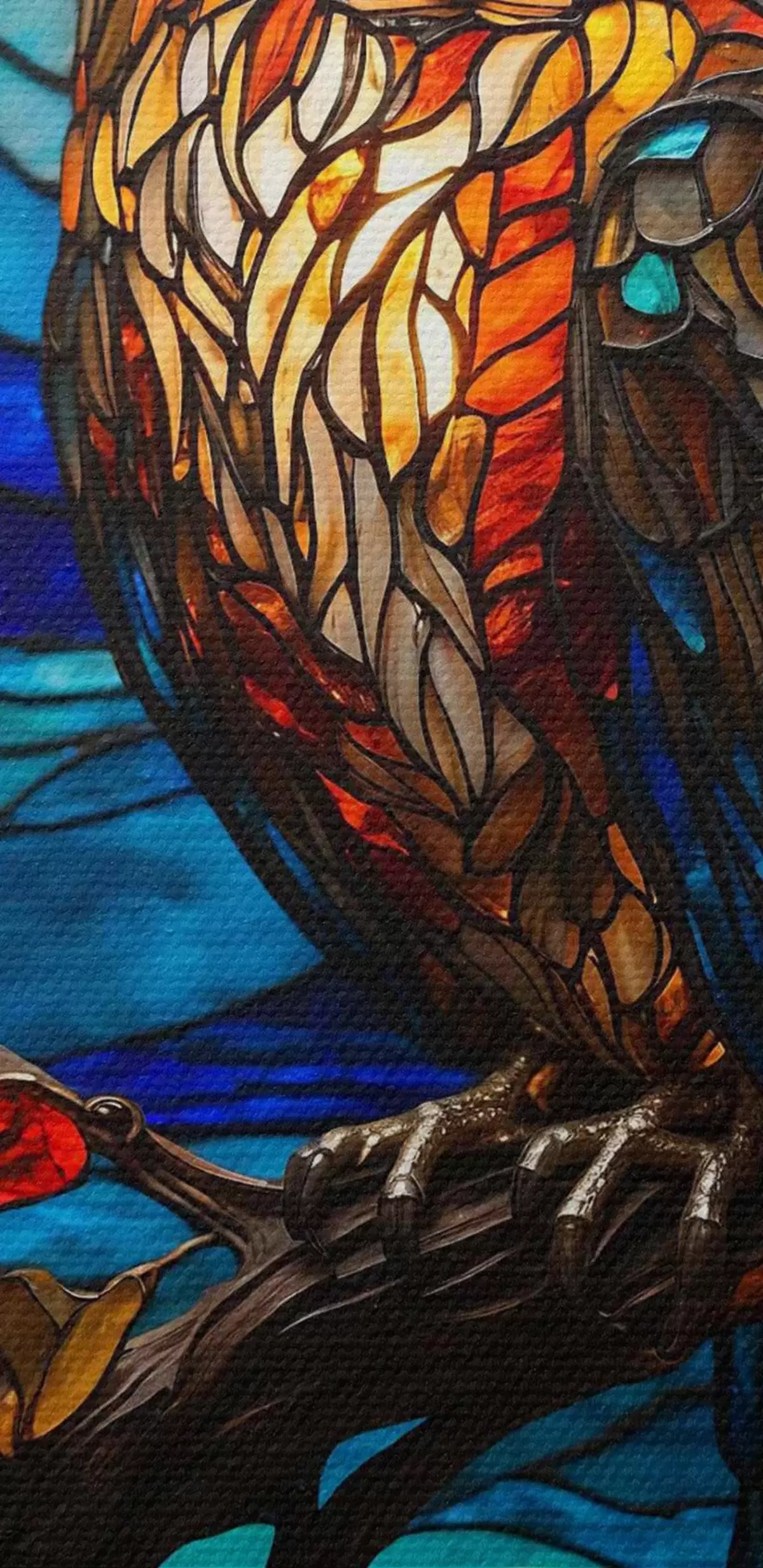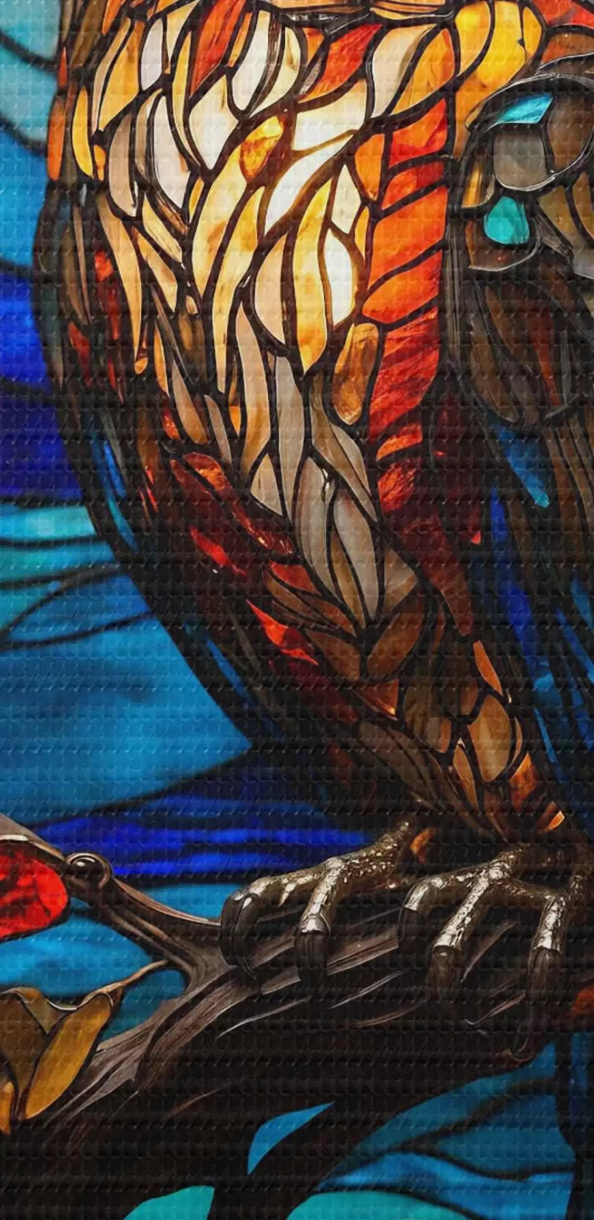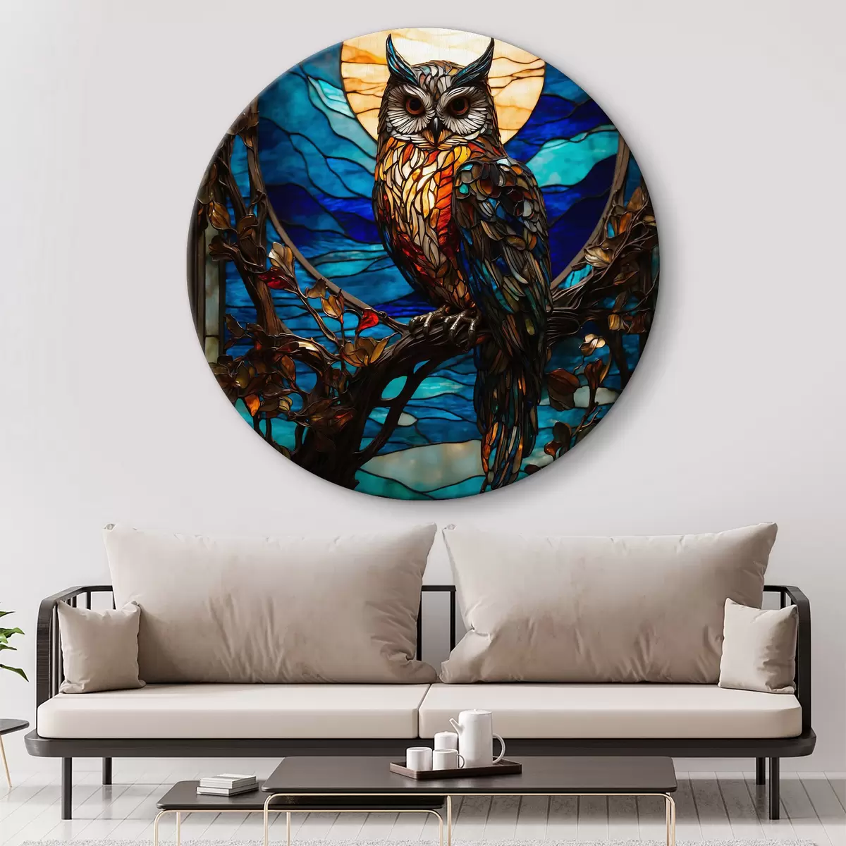 Okrągły obraz Witrażowa sowa na gałęzi drzewa Nr r38185