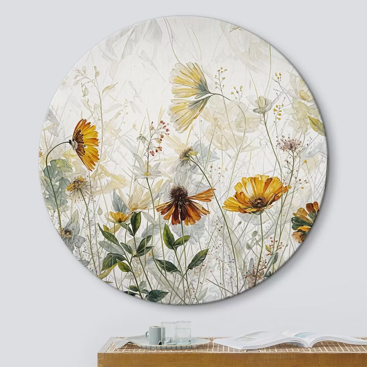 Okrągłe obrazy Pole delikatnych kwiatów na białym tle obraz olejny r38197