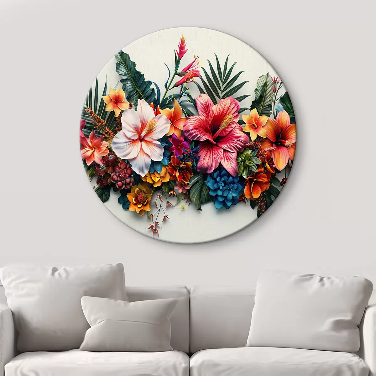 Okrągłe obrazy Tropikalna kompozycja kwiatowa r38243