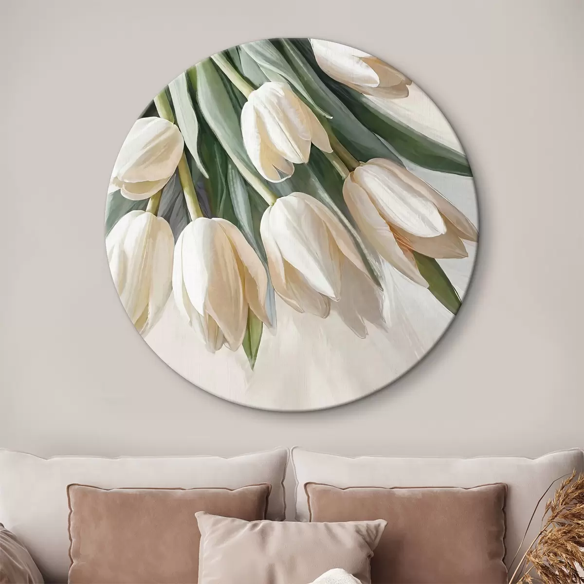 Okrągły obraz Zbliżenie na białe tulipany Nr r38271