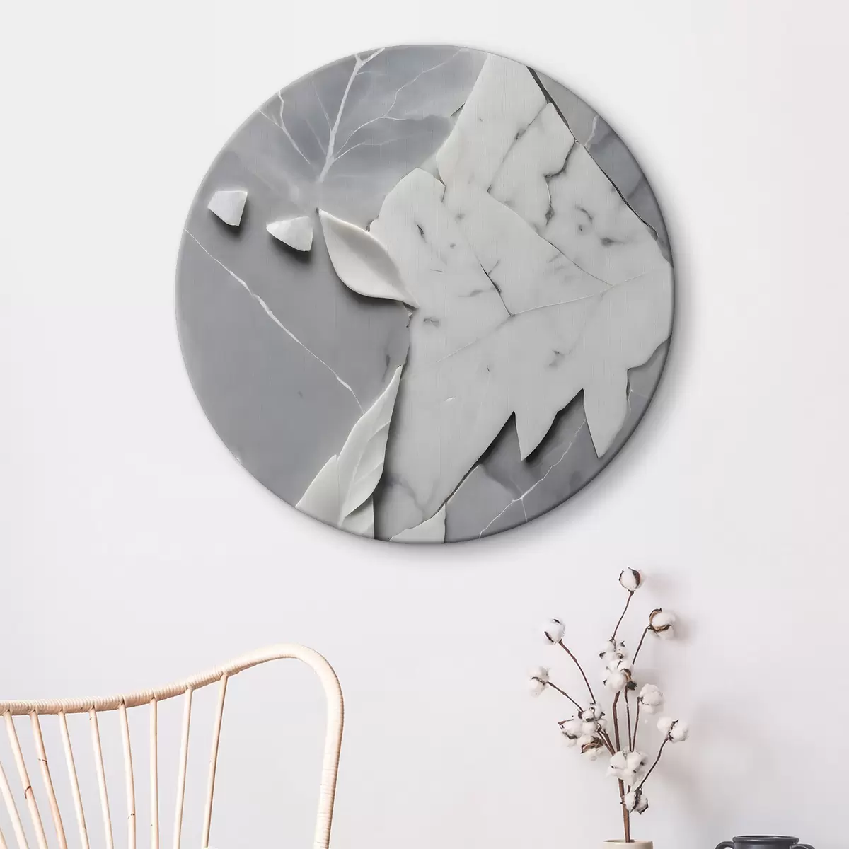 Okrągły obraz Powierzchnia z białego i szarego marmuru z liśćmi Nr r38272