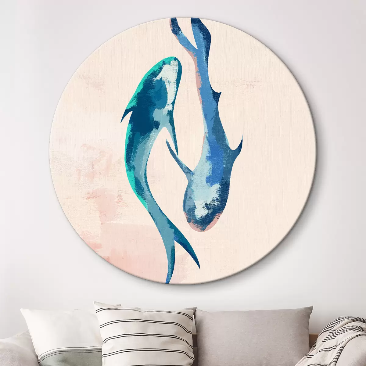 Okrągłe obrazy Niebieska ryba yin-yang na różowym tle, minimalizm, imitacja malarstwa olejnego, abstrakcja, kolor niebieski i różowy r38275
