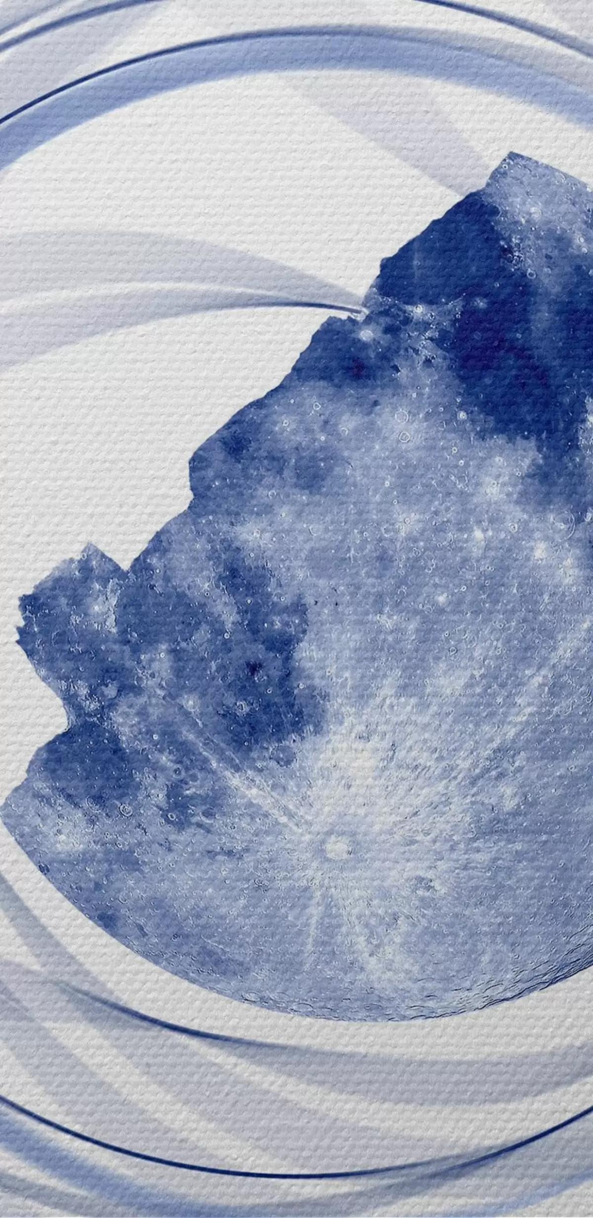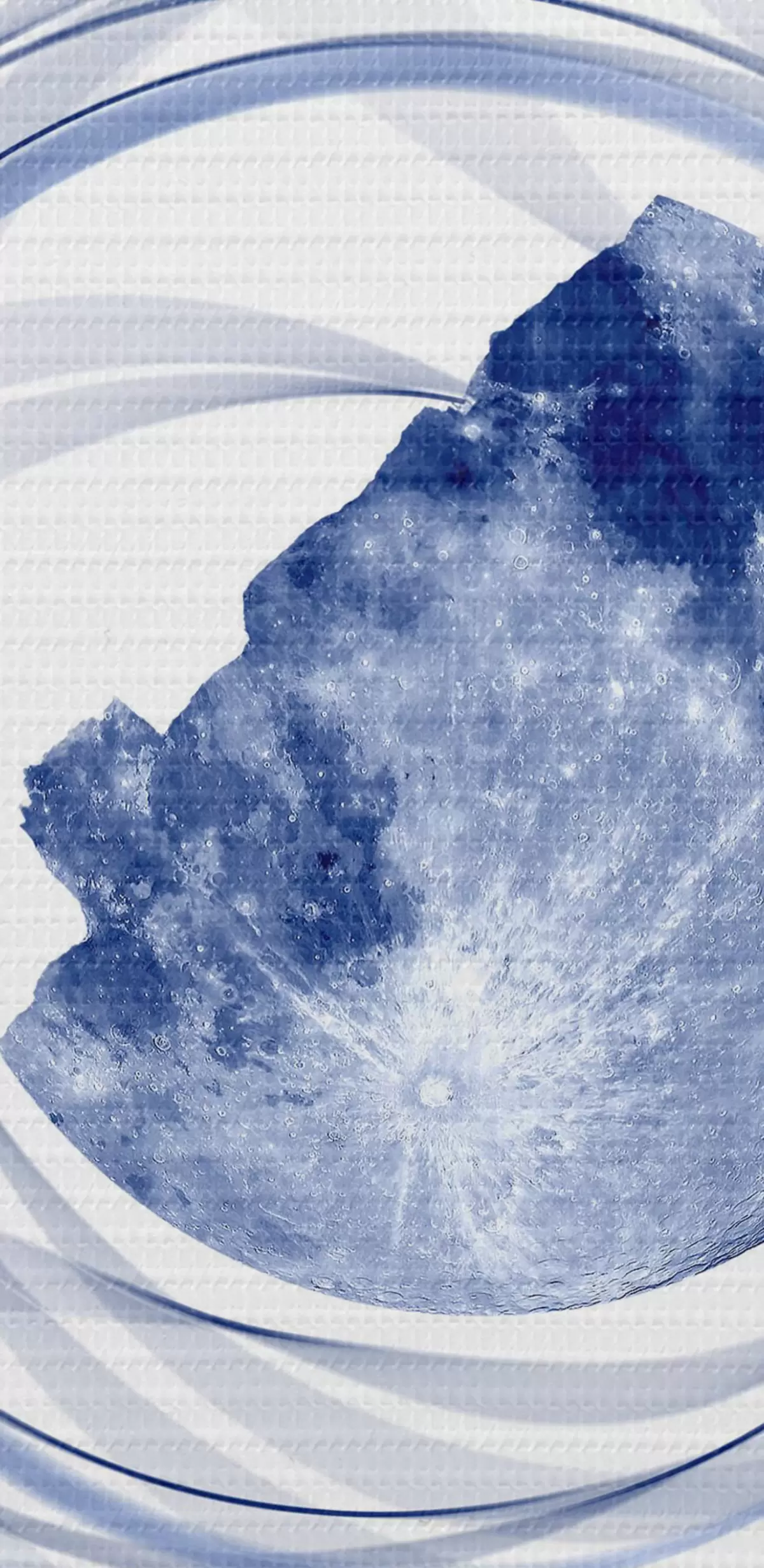 Okrągły obraz Orbita księżyca, półksiężyc, minimalizm, przestrzeń, czas, zakrzywione niewyraźne linie, gwiazdy, galaktyka, kolor niebieski Nr r38280
