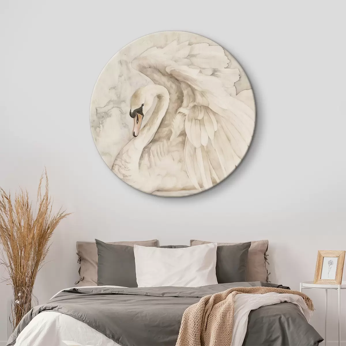 Okrągłe obrazy Biały łabędź ze skrzydłami r38296