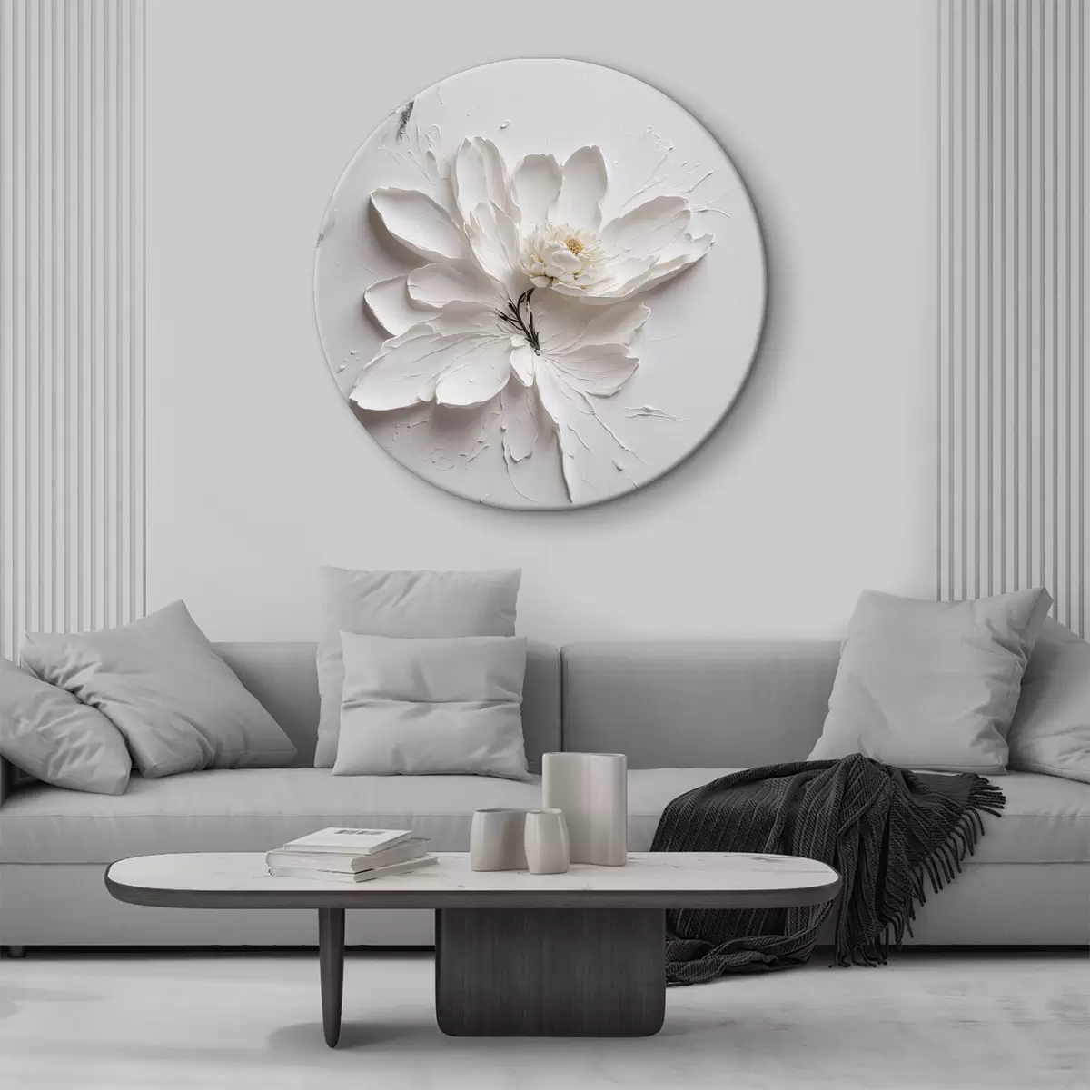 Okrągły obraz Biały kwiat w oleju Nr r38303