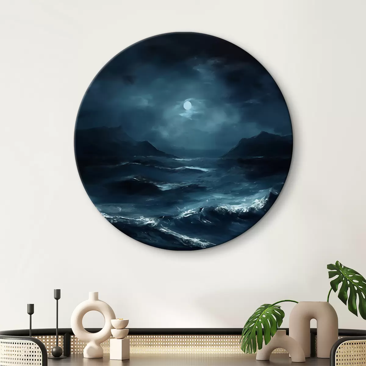 Okrągły obraz Światło księżyca na nocnym morzu Nr r38323