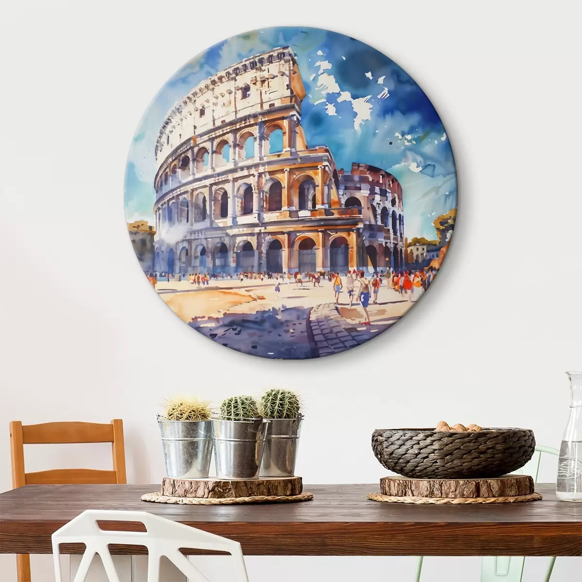 Okrągłe obrazy Akwarela dużego budynku z wieloma łukami r38326