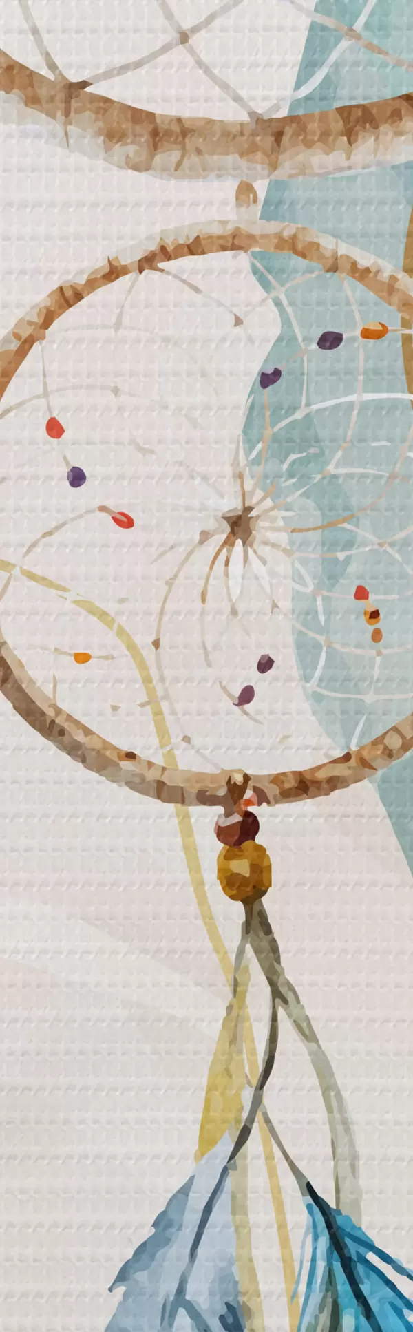 Okrągły obraz akwarela, łapacz snów, pióra, pastel Nr r38330